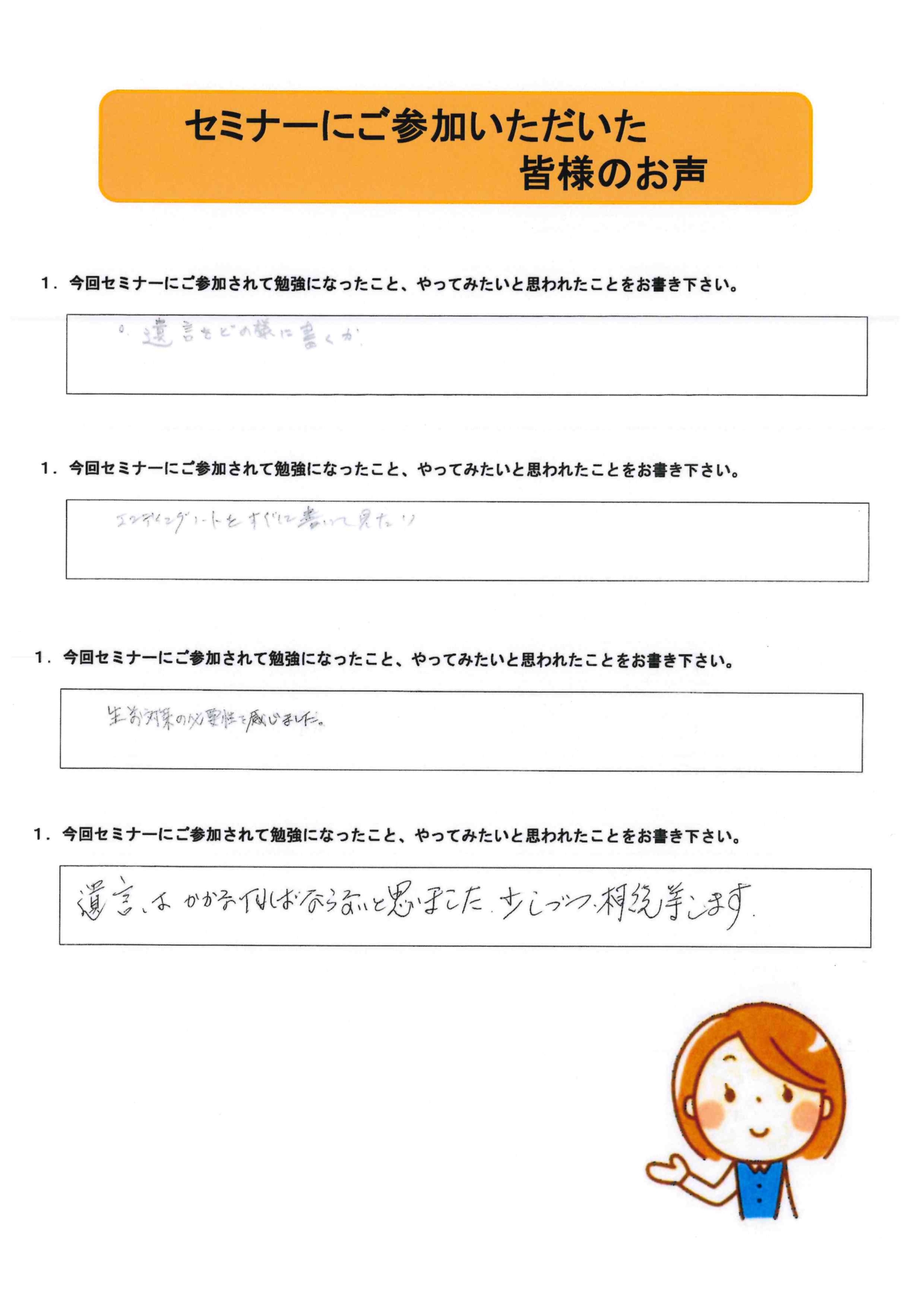 遺言はかかなければならないと思いました。少しづつ相談等します。